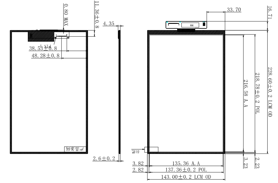 | 显示尺寸: | 135.36 (宽) × 216.58 (高) mm (A.A) |