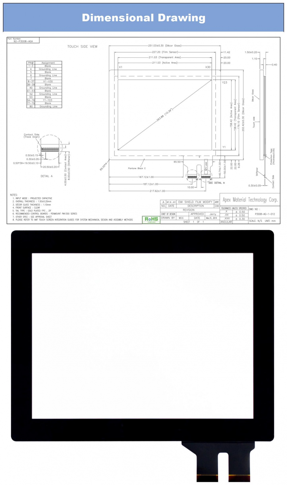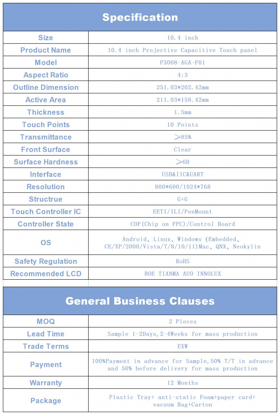 | 关键描述: | AMT P3008-AGA 10.4寸电容触摸屏 G+F+F 多点触控 工业电容屏 |
