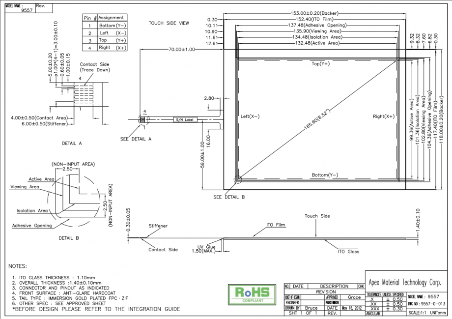 6.5 inch AMT Resisitive Touch Panel 9557