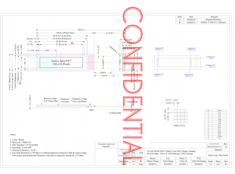 | 关键描述: | 0.91寸OLED显示屏128*32 15PINS SPI PMOLED显示屏 SSD1316 |