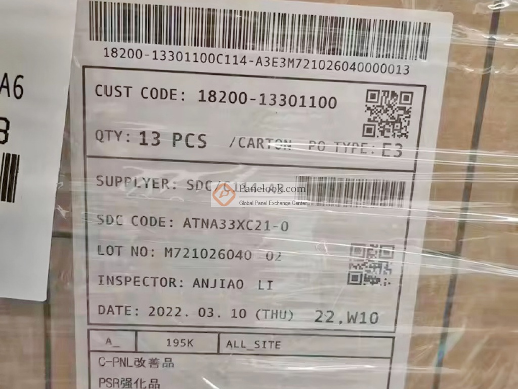 三星 (Samsung) 推出的 ATNA33XC21-0 (产品代码: SDC4169)是一款采用AM-OLED技术的 13.3英寸显示屏,它自发光,无触摸。屏库总结它的典型特征为: DCI-P3,sRGB,端子倒装,10位灰阶,表面镜面, eDP1.4b。它的工作温度为 -20 ~ 70°C,存储温度为 -40 ~ 85°C。此型号适合应用于 笔记本。根据屏库掌握的情报此产品于2022年Q4量产,当前生产状态为量产中。目前ATNA33XC21-0在屏库上有11条现货信息、10家供应商信息,交易氛围十分活跃。屏库于2023年11月17日对此型号首次建立参数,并于2025年06月06日对参数进行了最后更新。根据三星 (Samsung)于2021年8月4日发布的版本号为Rev.003的产品规格书,ATNA33XC21-0显示分辨率为 1920(RGB)×1080 (FHD),宽高比为16:9 (宽:高),像素采用RGB垂直条状排列。它的显示区域尺寸为293.76×165.24 (宽×高) mm,外观尺寸为297.46(宽)×171.79(高)×3.34(厚) mm,表面处理为镜面 (Haze 0%),产品净重140g (Max.)外观样式为薄屏 (PCBA弯折, 厚度≤3.0mm)。本产品自发光。ATNA33XC21-0采用了eDP (2 Lanes)信号接口,总共30 pins,采用端子连接,驱屏电压为3.3/10V (Typ.)(VDD/VBAT)。它的典型垂直刷新率Fv为60Hz。如果开发新产品想采用ATNA33XC21-0OLED屏,屏库®建议您向三星 (Samsung)或其代理商了解关于ATNA33XC21-0的最新的生产状态信息和技术信息。屏库®上所显示的面板参数均由屏库电子工程师依据规格书录入,已尽力减少错误,但不能保证参数的完全正确。请以规格书为准!