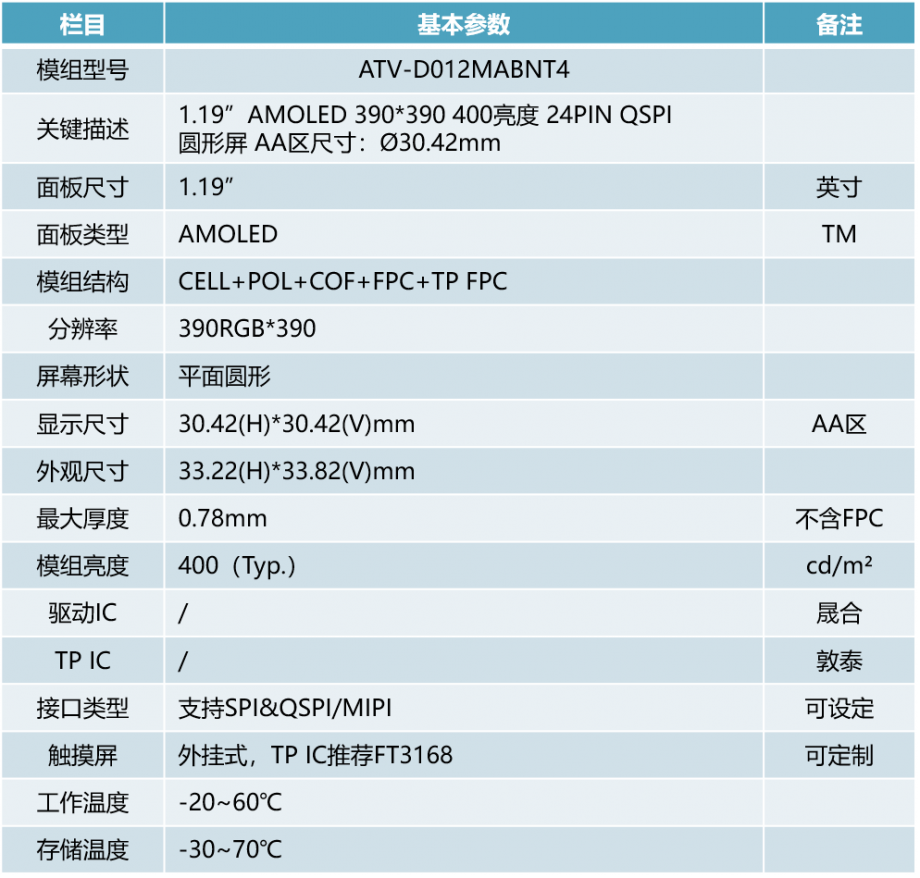 | 关键描述: | 1.19英寸AMOLED 显示模组, 390*390 24PIN QSPI接口, 亮度350cd/㎡ |