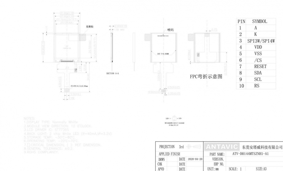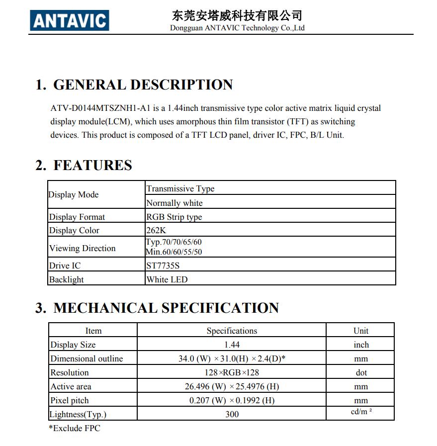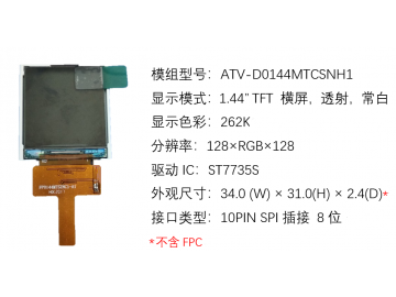 | 关键描述: | 1.44寸液晶屏 128*128 TN型液晶屏 300亮度 10pins SPI接口串口彩屏 液晶显示模组 IC:ST7735S |
