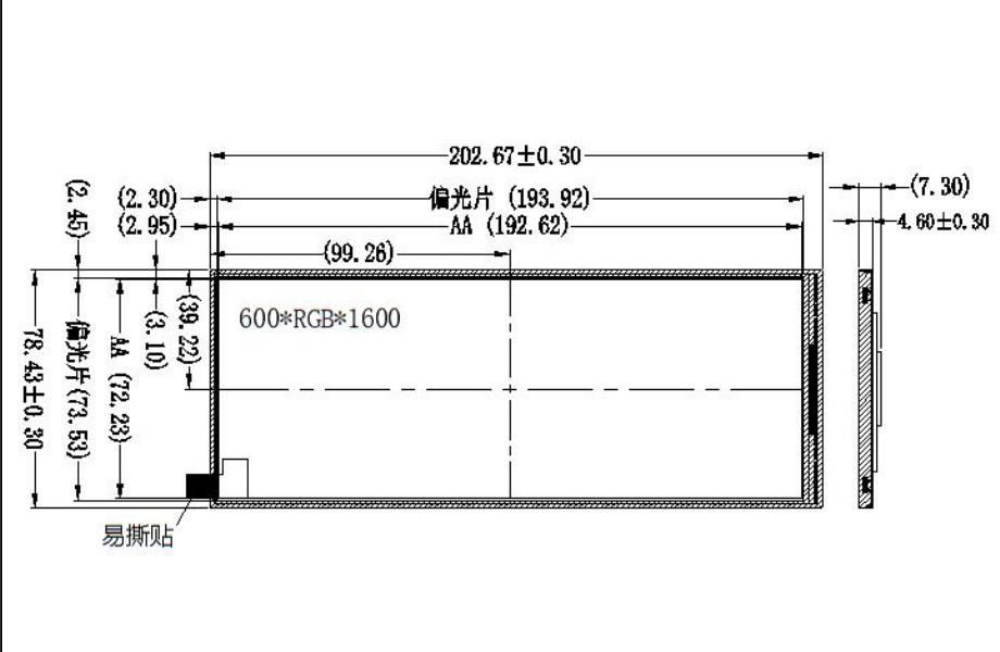 | 显示尺寸: | 72.234 (宽) × 192.624 (高) mm (A.A) |