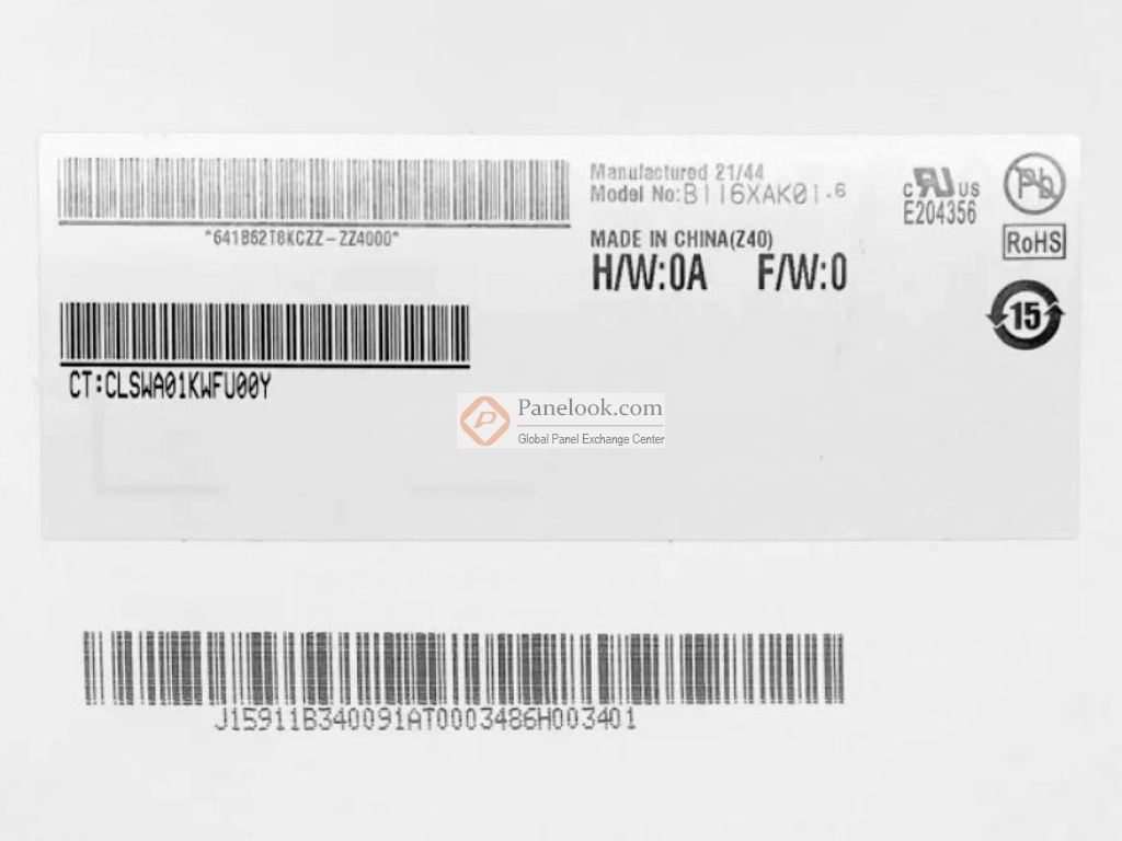 B116XAK01.6 (产品代码: AUO1EA5)是友达 (AUO)推出的一款11.6吋a-Si TFT-LCD液晶模组产品,它装配有WLED背光,含LED驱动背光驱动,On-Cell Touch。此产品工作温度为 0 ~ 60°C,存储温度为 -20 ~ 60°C,耐振动性为1.5G (14.7 m/s²)。它的典型特征屏库总结为: 带触摸屏,白光LED背光,含LED驱动器,端子倒装,表面雾面, eDP1.2。基于它的特征屏库推荐此型号应用于笔记本等产品。根据屏库掌握的情报此产品于2022年Q3量产,当前生产状态为已停产。目前此型号在屏库上有0条现货信息、0家供应商信息,交易氛围清淡。屏库于2024年09月18日对此型号首次建立参数,并于2025年04月08日对参数进行了最后更新。根据友达 (AUO)于2022年5月23日发布的版本号为HW1A_Ver1.0的产品规格书,B116XAK01.6显示分辨率为1366(RGB)×768 (WXGA),宽高比为16:9 (宽:高),像素采用RGB垂直条状排列。它的显示区域尺寸为256.125(宽)×144(高) mm,外观尺寸为278(宽)×168.02(高)×3.2(厚) mm,表面处理为雾面,Hard coating (3H),产品净重200g (Max.)外观样式为薄屏 (PCBA平直, 厚度≤3.2mm)。背光方面此产品采用了WLED发光的侧入式光源,光源的使用寿命为15K小时,含LED驱动。B116XAK01.6采用了eDP (1 Lane)信号接口,总共40 pins,采用端子连接,驱屏电压为3.3V (Typ.)。它的典型垂直刷新率Fv为60Hz。屏库上标注的生产状态仅供参考,不应作为用户的决策依据。屏库®上所显示的面板参数均由屏库电子工程师依据规格书录入,已尽力减少错误,但不能保证参数的完全正确。请以规格书为准!如果开发新产品想采用此液晶模组,关于B116XAK01.6的最新的生产状态信息和技术信息,屏库®建议您咨询友达 (AUO)。