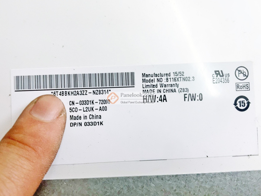 友达液晶模组B116XTN02.3 HW4A验货标准(IIS)