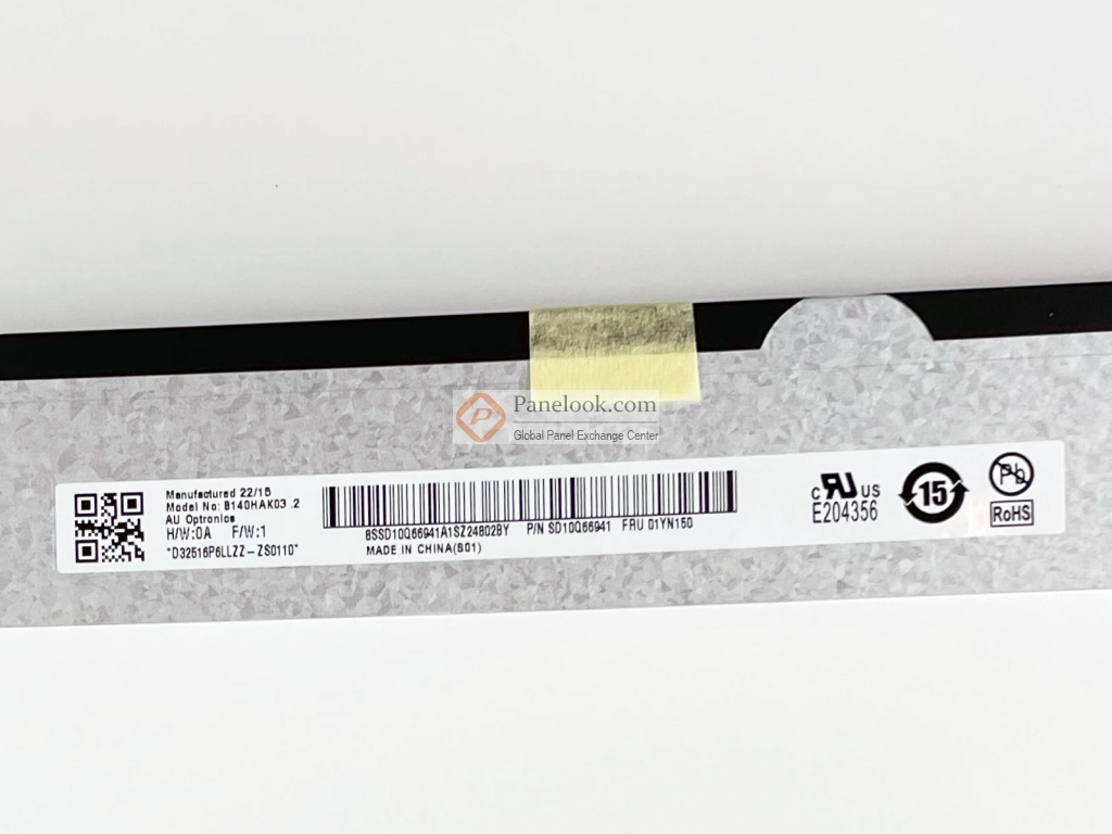 B140HAK03.2 HW0A (产品代码: AUO323D)是友达 (AUO)推出的一款14.0吋a-Si TFT-LCD液晶模组产品,它装配有WLED背光,含LED驱动背光驱动,On-Cell Touch。此产品工作温度为 0 ~ 50°C,存储温度为 -20 ~ 60°C,耐振动性为1.5G (14.7 m/s²)。它的典型特征屏库总结为: 带触摸屏,白光LED背光,含LED驱动器,端子倒装,表面雾面, eDP1.2, Lenovo P/N SD10Q66941 FRU 01YN150。基于它的特征屏库推荐此型号应用于笔记本等产品。根据屏库掌握的情报此产品于2019年Q1量产,当前生产状态为已停产。目前此型号在屏库上有0条现货信息、0家供应商信息,交易氛围清淡。屏库于2025年03月19日对此型号首次建立参数,并于2025年12月17日对参数进行了最后更新。根据友达 (AUO)于2020年4月13日发布的版本号为HW0A_Ver1.1的产品规格书,B140HAK03.2 HW0A显示分辨率为1920(RGB)×1080 (FHD),宽高比为16:9 (宽:高),像素采用RGB垂直条状排列。它的显示区域尺寸为309.37(宽)×174.02(高) mm,外观尺寸为315.87(宽)×197.48(高)×3(厚) mm,表面处理为雾面,Hard coating (3H),产品净重290g (Max.)外观样式为薄屏 (PCBA平直, 厚度≤3.2mm)。背光方面此产品采用了WLED发光的侧入式光源,光源的使用寿命为15K小时,含LED驱动。B140HAK03.2 HW0A采用了eDP (2 Lanes)信号接口,总共40 pins,采用端子连接,驱屏电压为3.3V (Typ.)。它的典型垂直刷新率Fv为60Hz。屏库上标注的生产状态仅供参考,不应作为用户的决策依据。屏库®上所显示的面板参数均由屏库电子工程师依据规格书录入,已尽力减少错误,但不能保证参数的完全正确。请以规格书为准!如果开发新产品想采用此液晶模组,关于B140HAK03.2 HW0A的最新的生产状态信息和技术信息,屏库®建议您咨询友达 (AUO)。