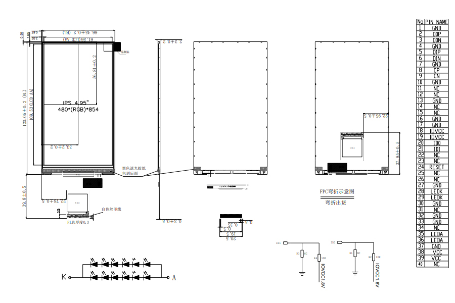 4.95寸竖屏FWVGA 480*854 背光上铁私模