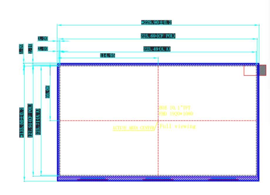 10.1寸横屏, 16:9比例 1920*1080 lvds接口