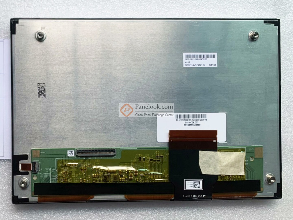 C101UAN01.0是友达 (AUO)推出的一款10.1吋a-Si TFT-LCD液晶模组产品,它装配有WLED背光,无触摸。此产品工作温度为 -30 ~ 85°C,存储温度为 -40 ~ 95°C,耐振动性为2.9G (28.4 m/s²)。它的典型特征屏库总结为: sRGB,宽温,3G抗震,超高亮度,白光LED背光,上/下,左/右翻转显示。基于它的特征屏库推荐此型号应用于户外高亮,车载显示等产品。根据屏库掌握的情报此产品于2021年Q4量产,当前生产状态为量产中。目前此型号在屏库上有4条现货信息、4家供应商信息,交易氛围活跃。屏库于2021年12月27日对此型号首次建立参数,并于2025年07月22日对参数进行了最后更新。根据友达 (AUO)于2021年7月21日发布的版本号为Ver1.0的产品规格书,C101UAN01.0显示分辨率为1920(RGB)×1200 (WUXGA),宽高比为16:10 (宽:高),像素采用RGB垂直条状排列,屏库计算出的像素密度为224 PPI。它的显示区域尺寸为217.44(宽)×135.9(高) mm,外观尺寸为236.96(宽)×163(高) mm,产品净重425±43g。背光方面此产品采用了WLED发光的侧入式光源。C101UAN01.0采用了LVDS (2 ch, 8-bit)信号接口,总共60 pins,采用FPC连接,驱屏电压为3.3V (Typ.)。它的典型垂直刷新率Fv为60Hz。屏库上标注的生产状态仅供参考,不应作为用户的决策依据。屏库®上所显示的面板参数均由屏库电子工程师依据规格书录入,已尽力减少错误,但不能保证参数的完全正确。请以规格书为准!如果开发新产品想采用此液晶模组,关于C101UAN01.0的最新的生产状态信息和技术信息,屏库®建议您咨询友达 (AUO)。