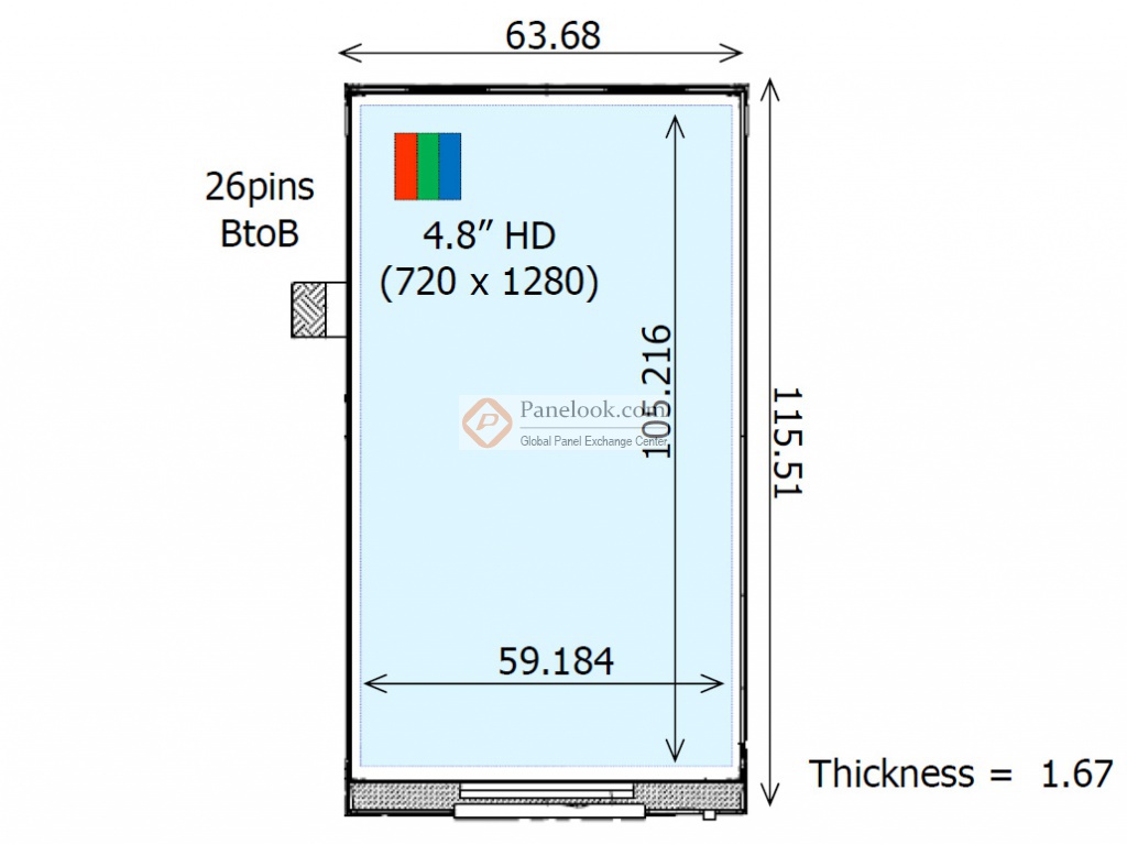 COM48H4P03ULC是株式会社ORTUS TECHNOLOGY (Ortustech,Ortustech) 推出的一款采用a-Si TFT-LCD技术的4.8英寸液晶模组产品,它装配有WLED背光,无背光驱动,无触摸,已邦定HX8394-F驱动IC。根据Ortustech (Ortustech)于2024年1月31日发布的版本号为Ver3.0的产品规格书,COM48H4P03ULC显示分辨率为720(RGB)×1280 (WXGA),宽高比为9:16 (宽:高),像素采用RGB垂直条状排列,屏库计算出的像素密度为309 PPI。它的显示区域尺寸为59.184×105.216 (宽×高) mm,外观尺寸为63.68×115.51 (宽×高)×2.47(厚) mm,表面处理为Hard coating (2H),产品净重25.2g (Typ.)。背光方面此产品采用了9S1P WLED发光的侧入式光源,光源的使用寿命为20K小时,不含背光驱动。COM48H4P03ULC采用了MIPI (4 data lanes)信号接口,总共26 pins,采用端子连接,驱屏电压为1.8/2.9V (Typ.)(IOVCC/VCC)。如果开发新产品想采用COM48H4P03ULC液晶模组,屏库®建议您向Ortustech (Ortustech)或其代理商了解关于COM48H4P03ULC的最新的生产状态信息和技术信息。屏库®上所显示的面板参数均由屏库电子工程师依据规格书录入,已尽力减少错误,但不能保证参数的完全正确。请以规格书为准!根据屏库掌握的情报此产品于2021年Q4量产,当前生产状态为量产中。目前COM48H4P03ULC在屏库上有1条现货信息、5家供应商信息,交易氛围活跃。屏库于2022年02月24日对此型号首次建立参数,并于2025年06月17日对参数进行了最后更新。它的工作温度为 -20 ~ 70°C,存储温度为 -30 ~ 80°C,耐振动性为2.0G (19.6 m/s²)。基于它肖像模式,半透射半反射式,白光LED背光, Blanview-2等特征,此型号推荐使用于手持终端。