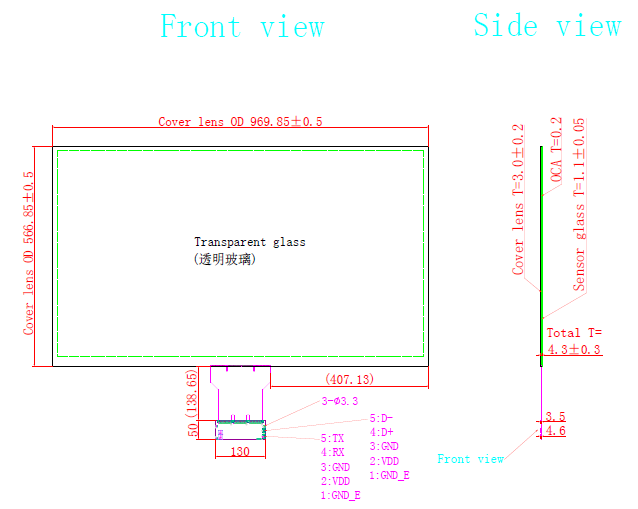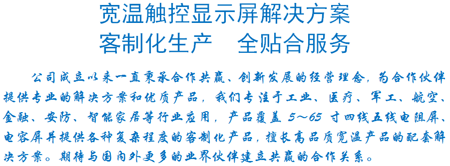 | 关键描述: | 43寸宽温电容屏, G+G, 16:9, USB接口(IIC、RS232可选), 应用于车载 军工 医疗 工业 |