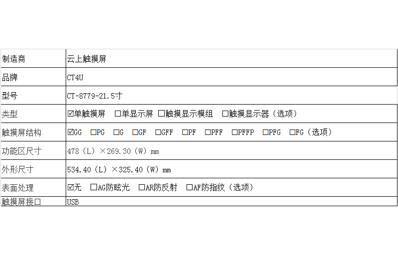 | 产品标签: | 投射电容触摸屏,工业电容屏,商业电容屏,车载电容屏 |