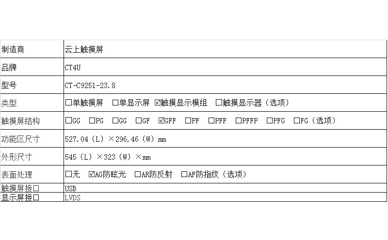 | 关键描述: | 23.8寸防爆电容触摸屏工业工控一体机械设备显示触控屏usb接口 |