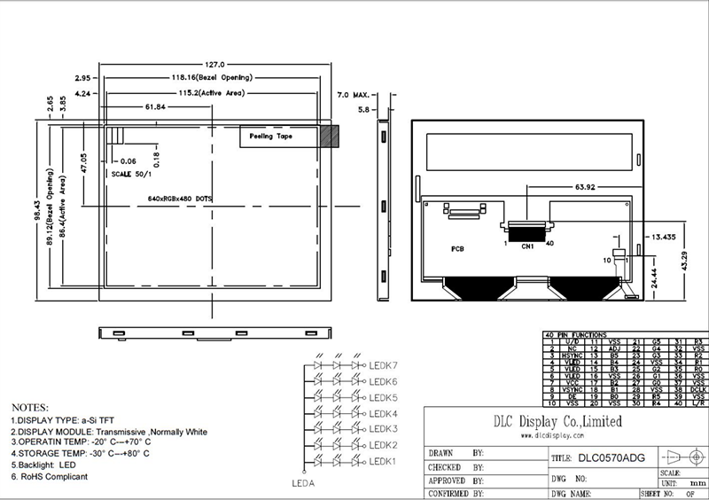 | 关键描述: | 5.7寸TFT液晶屏,640*480分辨率 400亮度亮度, 40PINS,TTL接口, 无MOQ, 应用于车载、工业显示等 |