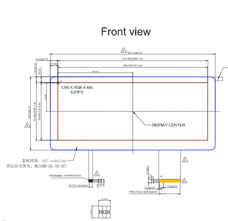| 关键描述: | 8.8寸 LVDS 800nit 1280*480, WLED, IPS, 带盖板高亮宽温工控液晶显示模组 60Pins |