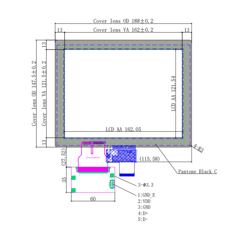| 显示尺寸: | 162 (宽) × 121.5 (高) mm (A.A) |