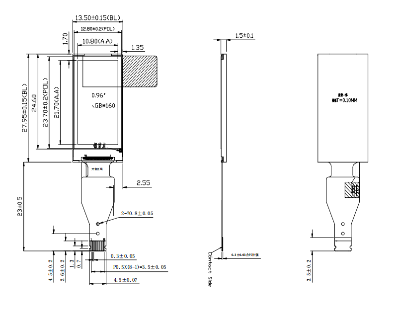 分辨率:80(H)RGB x 160(V)