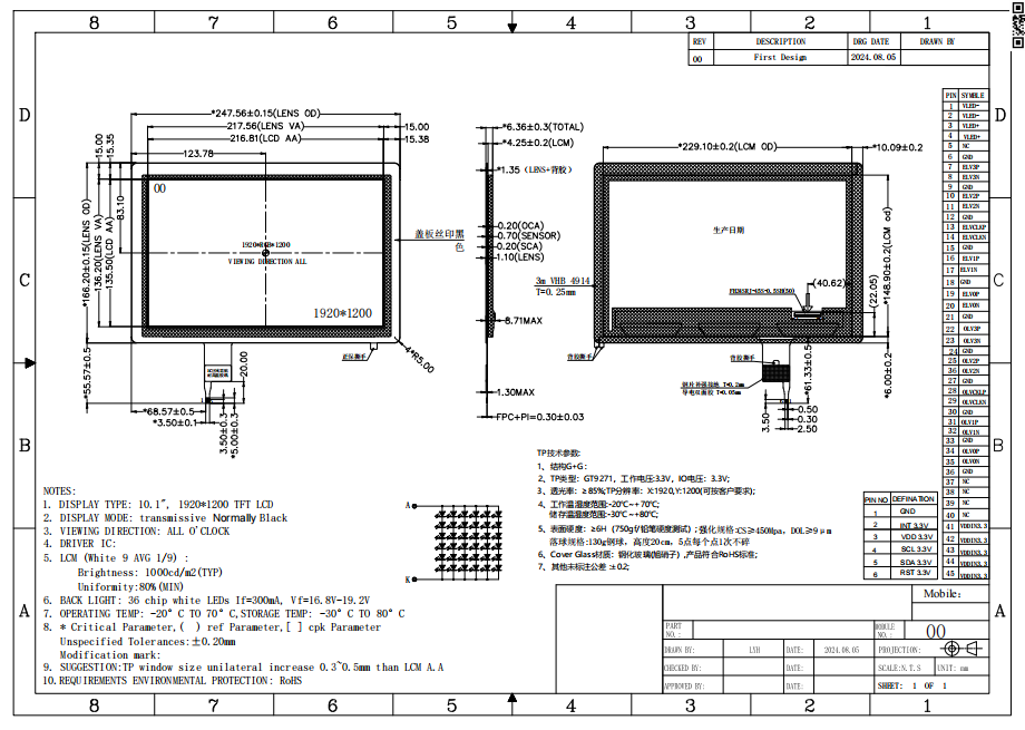 LCM+CTP:247.56(W) ×166.20(H) ×6.36(T)mm