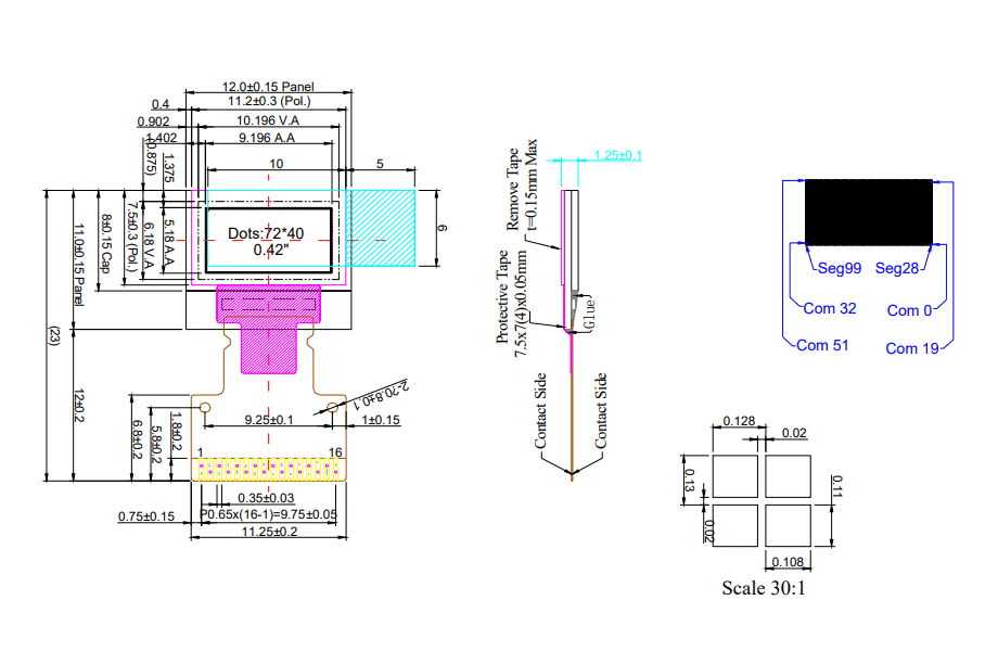 | 关键描述: | 0.42" 72x40 单色PMOLED, 支持SPI、IIC接口 |