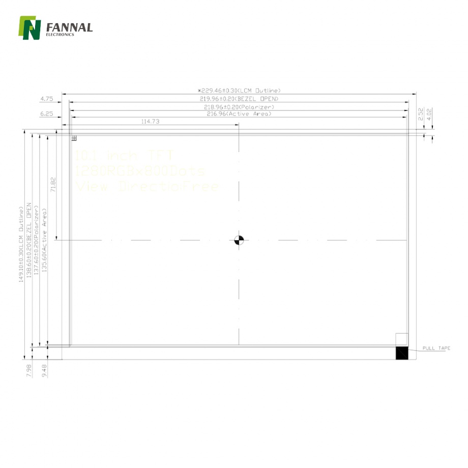 | 10.1 | 1280x800 | 1000 | LVDS 40 | 229.8x149.0x5.8 | 216.96x135.6 | 30K | -20~70 | 80/80/80/80 | FN1010D013C |