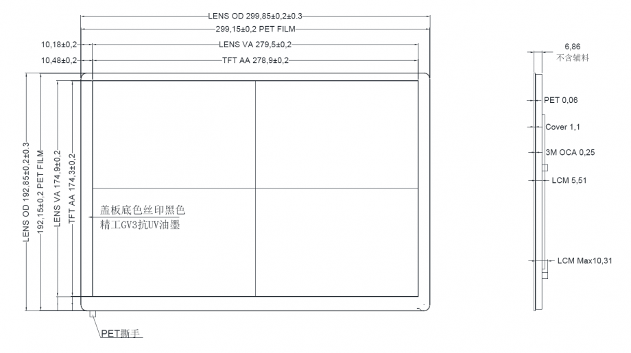 5、模组尺寸:190.3*291.2*5.31