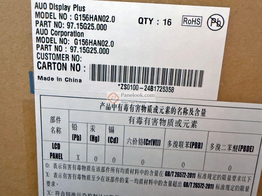 友达液晶模组G156HAN02.0验货标准(IIS)