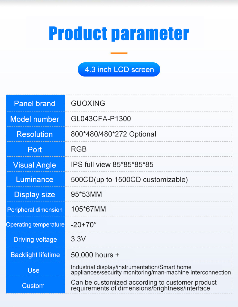 | 产品型号: | GL043CFA-P1300 |