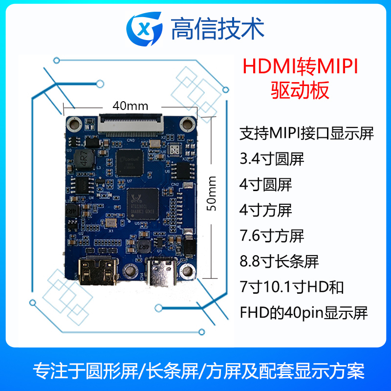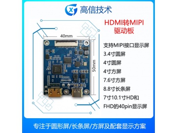 完美匹配圆形显示屏,2.1寸 2.8 寸 3.4寸 4寸 5寸等圆形显示屏,包含了RGB接口和MIPI接口,同时支持我司其它显示屏,比如4.6寸长条屏和6.9寸长条屏,以及方形显示屏 3.4寸 3.95寸和4.2寸等,同时支持市场上常规的显示屏