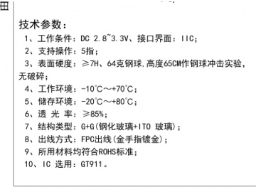 | 关键描述: | 5寸商业电容触摸屏 G+G I2C接口 16:9 多点触摸 适用于咖啡机等产品 |