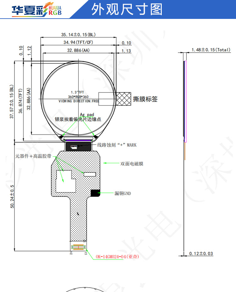 | 显示尺寸: | 32.886 (宽) × 32.886 (高) mm (A.A) |