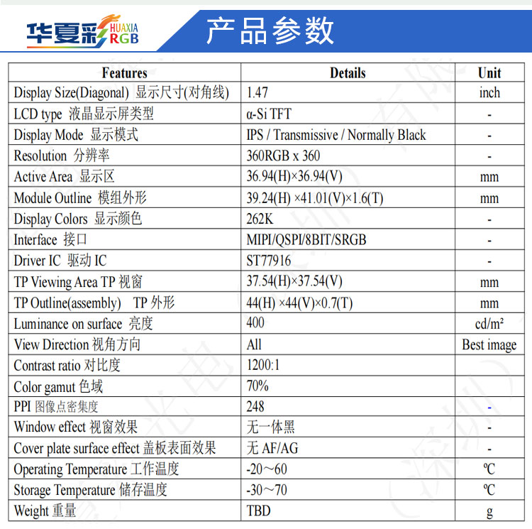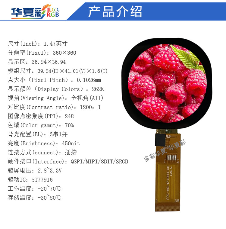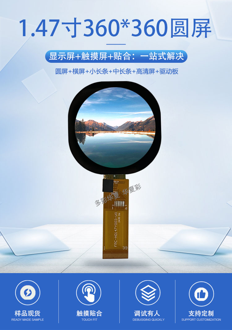 | 关键描述: | 1.47寸圆360*360TFT彩屏MIPI/QSPI/8BIT/SRGB接口全贴合显示屏 |