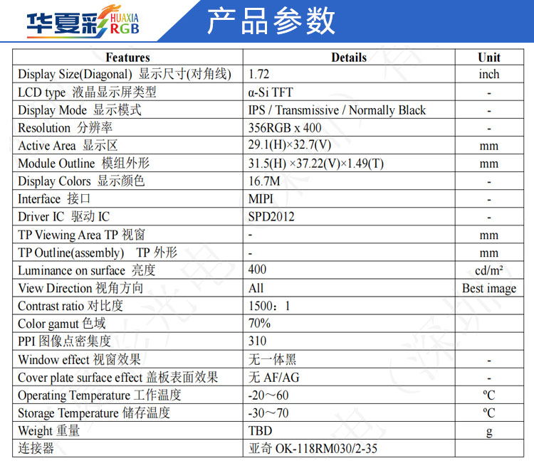 | H0172S004 V0规格书1.72寸356X400 MIPI.pdf | 1.7 M | 请联系我们索取 |