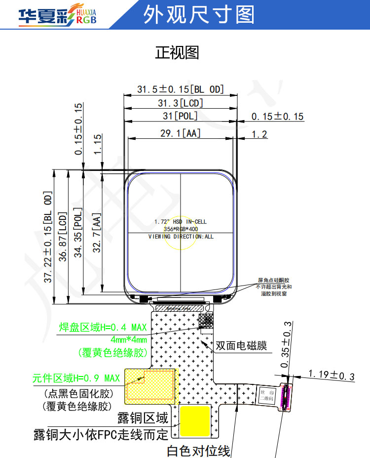| 显示尺寸: | 29.1 (宽) × 32.7 (高) mm (A.A) |
