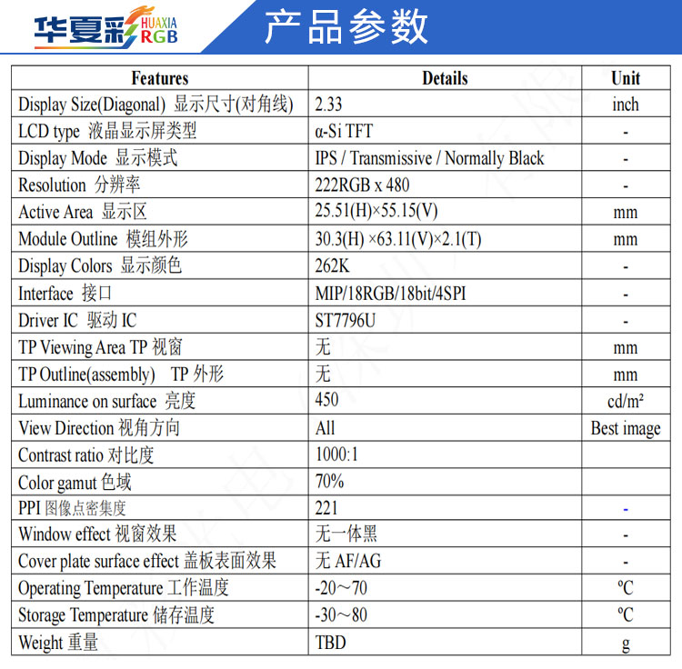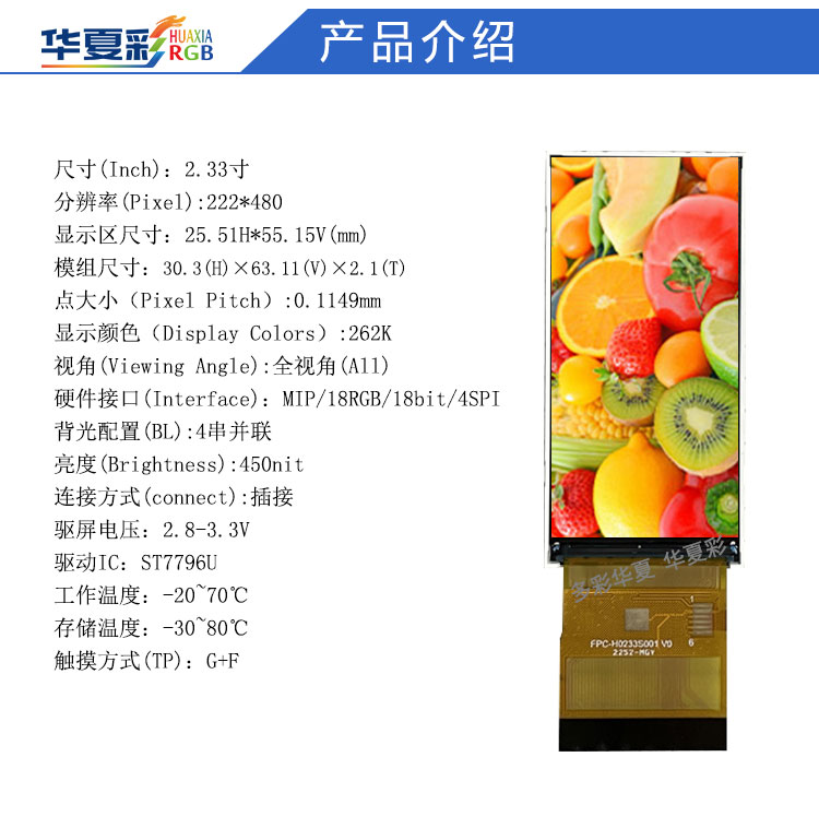 | H0233S001 V1规格书2.33寸222X480 全接口.pdf | 1.3 M | 请联系我们索取 |