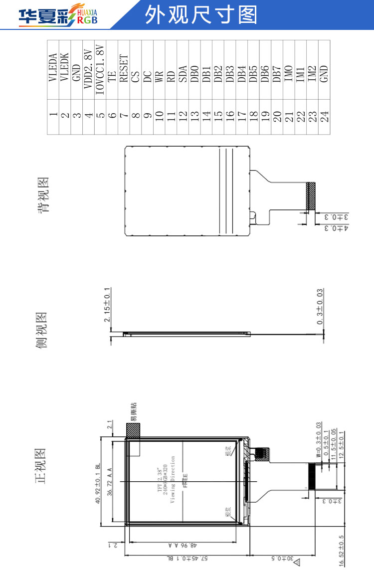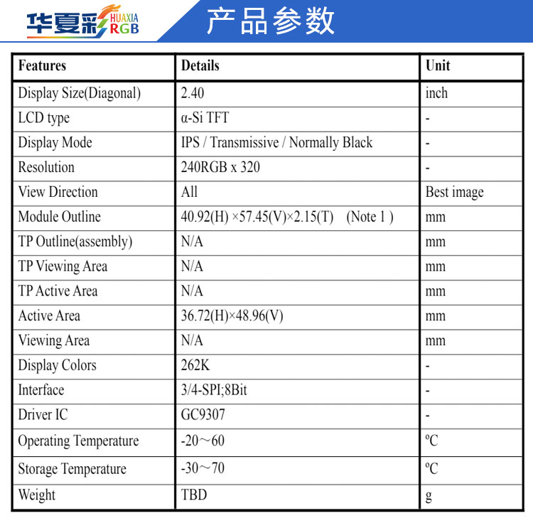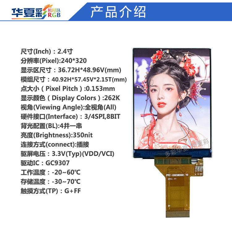 | 关键描述: | 2.4寸240*320全视角IPS液晶屏3-4SPI 8bit接口执法仪对讲机显示屏 |