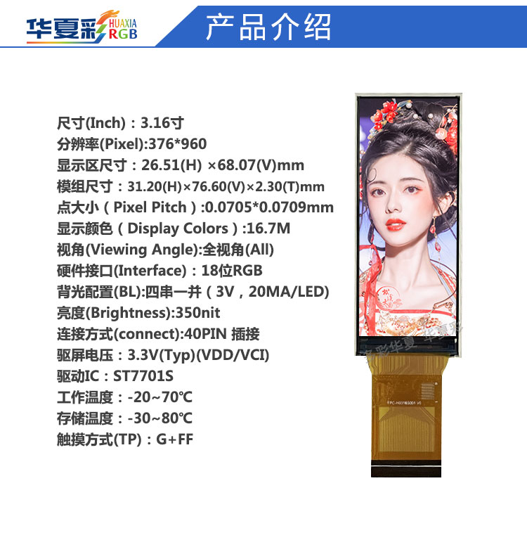 | 关键描述: | 3.16寸显示屏376*960词典笔屏夜视仪液晶屏直发仪高清长条竖屏 |