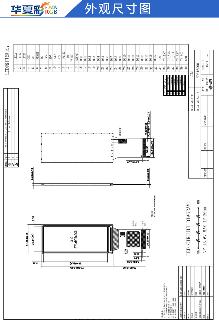 | H0316S001 V0规格书3.16寸376X960 RGB 长条屏.pdf | 1.5 M | 请联系我们索取 |
