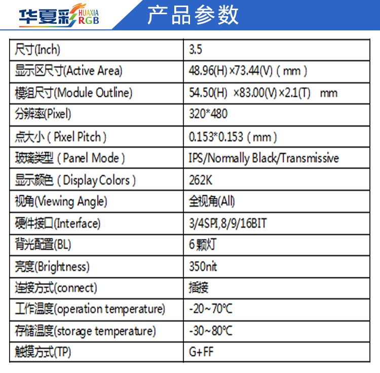 | 关键描述: | 3.5寸320*480液晶屏高亮人脸识别码表美容仪SPI/mipi/RGB显示屏厂家 |