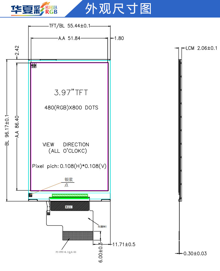 | 显示尺寸: | 51.84 (宽) × 86.4 (高) mm (A.A) |