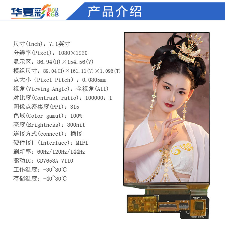 7寸AMOLED显示屏1080P高刷纯黑底高清高亮阳光下可见无人机手柄屏 |