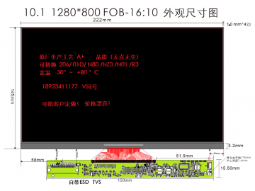 | 10 | XNW101-HSDFPC-N80-V0 | 10.1寸 | 229x149x2.7±0.3mm | 40PIN -LVDS/接口朝外 | 1280x800 | 横屏 IPS | 300-500亮度 | 工控宽温/包胶/上下铁 | 按原厂出货标准 |