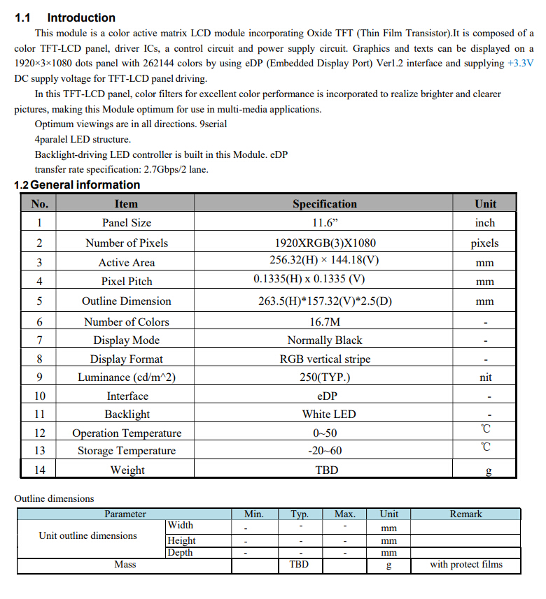 11.6寸液晶屏窄边1920X1080 IPS 30PIN EDP 亮度 250CD-1000CD 亮度可以定制