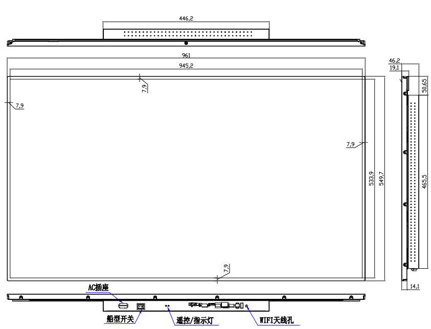 | 关键描述: | 43寸窄边框显示屏 7.9mm黑色边框 可拼接使用 |