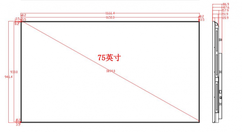 | 关键描述: | 瀚图75寸窄边框液晶屏模组, 液晶拼接屏, 3.5mm边框双边7mm, 3840*2160, 500亮度, VBYONE |