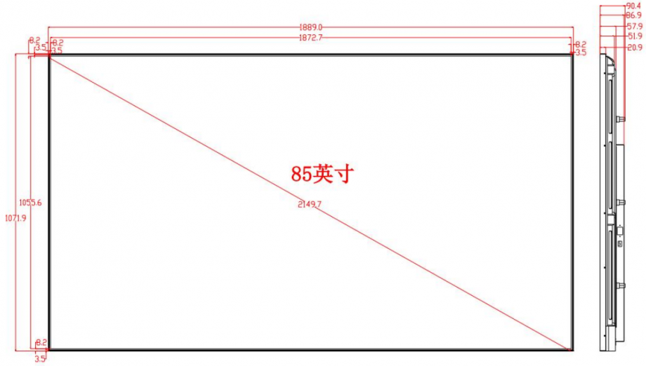 | 关键描述: | 瀚图85寸窄边框液晶屏模组, 液晶拼接屏, 3.5mm单边物理边框双边7mm, 3840*2160, 500亮度, VBYONE |