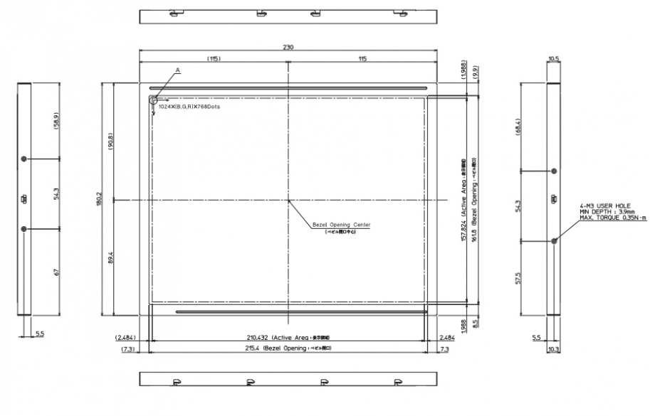 | 显示尺寸: | 210.432 (宽) × 157.824 (高) mm (A.A) |