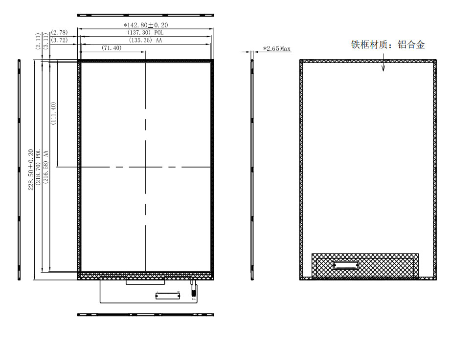 | 显示尺寸: | 135.36 (宽) × 216.58 (高) mm (A.A) |