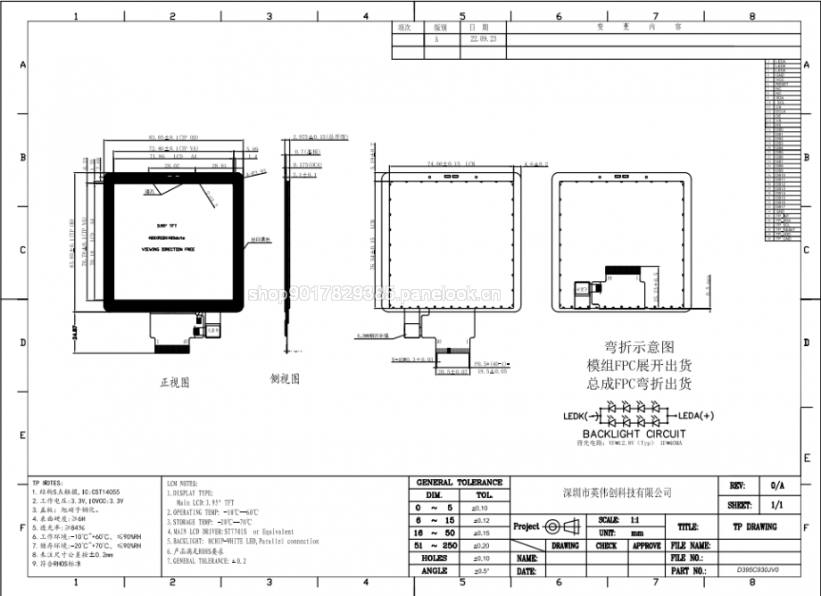 | 显示尺寸: | 71.86 (宽) × 70.18 (高) mm (A.A) |
