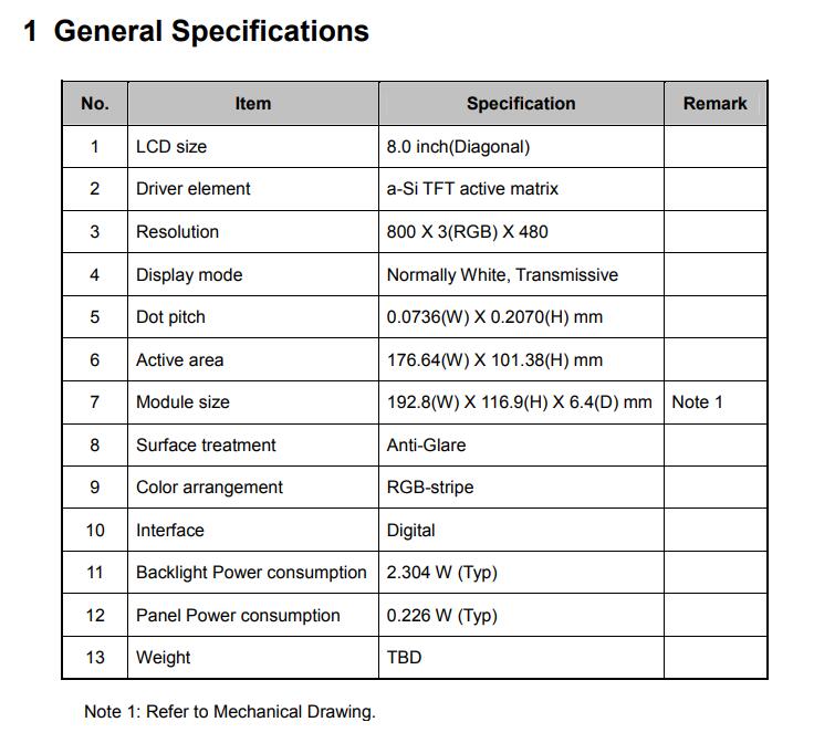 | 显示尺寸: | 176.64 (宽) × 101.38 (高) mm (A.A) |